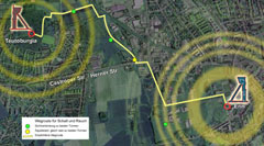 Schall braucht fast 6 Sekunden von einem Turm zum Anderen. Je nach Windrichtung entstehen so auf