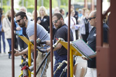Die Klanginstallationen "Redepfähle", "Fleischwolf", "Holzspülzüge" von dem Medienkünstler Wolfram Lakaszus im Park getestet, bespielt und ausprobiert werden.