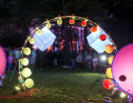 Zum Abschluss wird die Weltfeuerkugel angezündet. Die Besucher sind eingeladen auch selbst