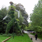den Menschen in die Natur ein. Der Stahlkörper ist mit einer Rankhilfe