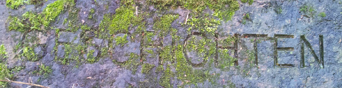 So liest man z.B. auf einem Stein ERINNERUNG, auf dem benachbarten VERSUNKEN. Alle Steine, ob sie